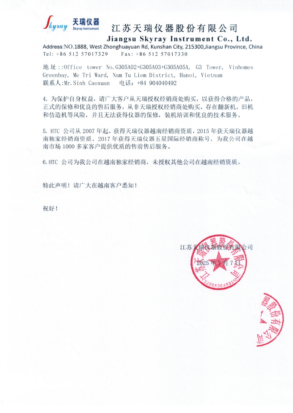 關(guān)于越南市場(chǎng)區(qū)域經(jīng)銷商授權(quán)的聲明