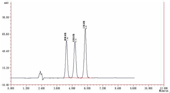 2、標(biāo)準(zhǔn)溶液的配置:用甲醇分別將3種標(biāo)準(zhǔn)品配置成適量濃度的 2,4,6--三氯苯酚,2,3,5,6--四氯苯酚、五氯苯酚的儲(chǔ)備液,使用時(shí)各吸取適量?jī)?chǔ)備液于同一容量瓶中,用甲醇稀釋至刻度,搖勻,待用。