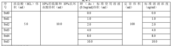 使用砷(As)標(biāo)準(zhǔn)使用溶液(0.1ug/ml),優(yōu)級(jí)純鹽酸(HCL) ,分析純硫脲和抗壞血酸,去離子水(電阻率≥10M 歐姆)等試劑。