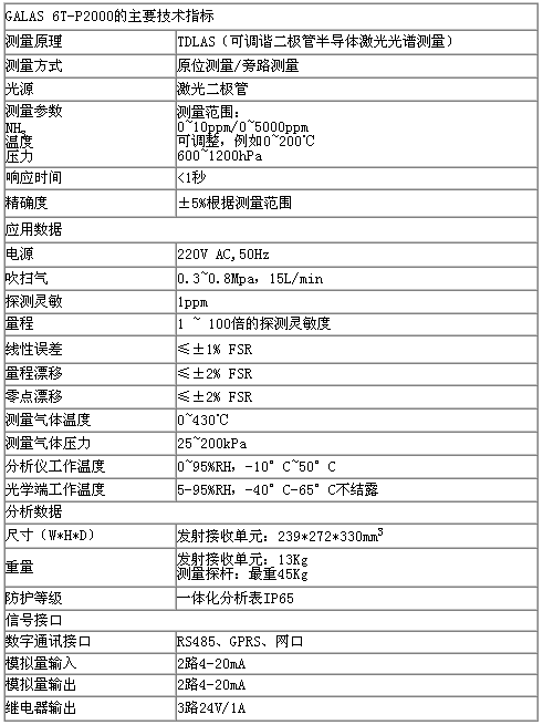 GALAS 6T-P2000激光氣體分析儀由于采用了激光半導(dǎo)體二極管吸收光譜(TDLAS)技術(shù),從根本上解決了采樣預(yù)處理帶來的諸如響應(yīng)滯后、維護(hù)頻繁、易堵易漏、易損件和運行費用高等各種問題,并具有如下特點: