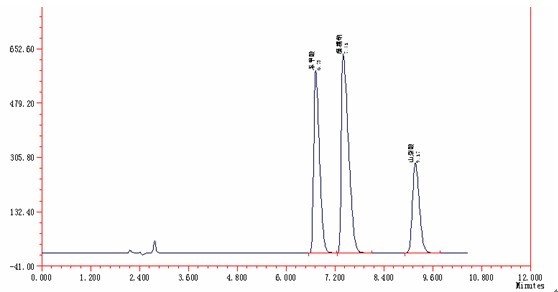 用超純水分別將3種標(biāo)準(zhǔn)品配置成適宜濃度的苯甲酸,糖精鈉、山梨酸的儲(chǔ)備液,備用。使用時(shí)分別取各儲(chǔ)備液適量,用甲醇稀釋成混合標(biāo)液,待測(cè)。