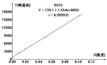 由實驗數據可知,離子色譜法測試水中BrO3-陰離子準確度高,檢出濃度低,方法簡單快捷,完全滿足環(huán)保行業(yè)對于水中BrO3-離子檢測的需求。